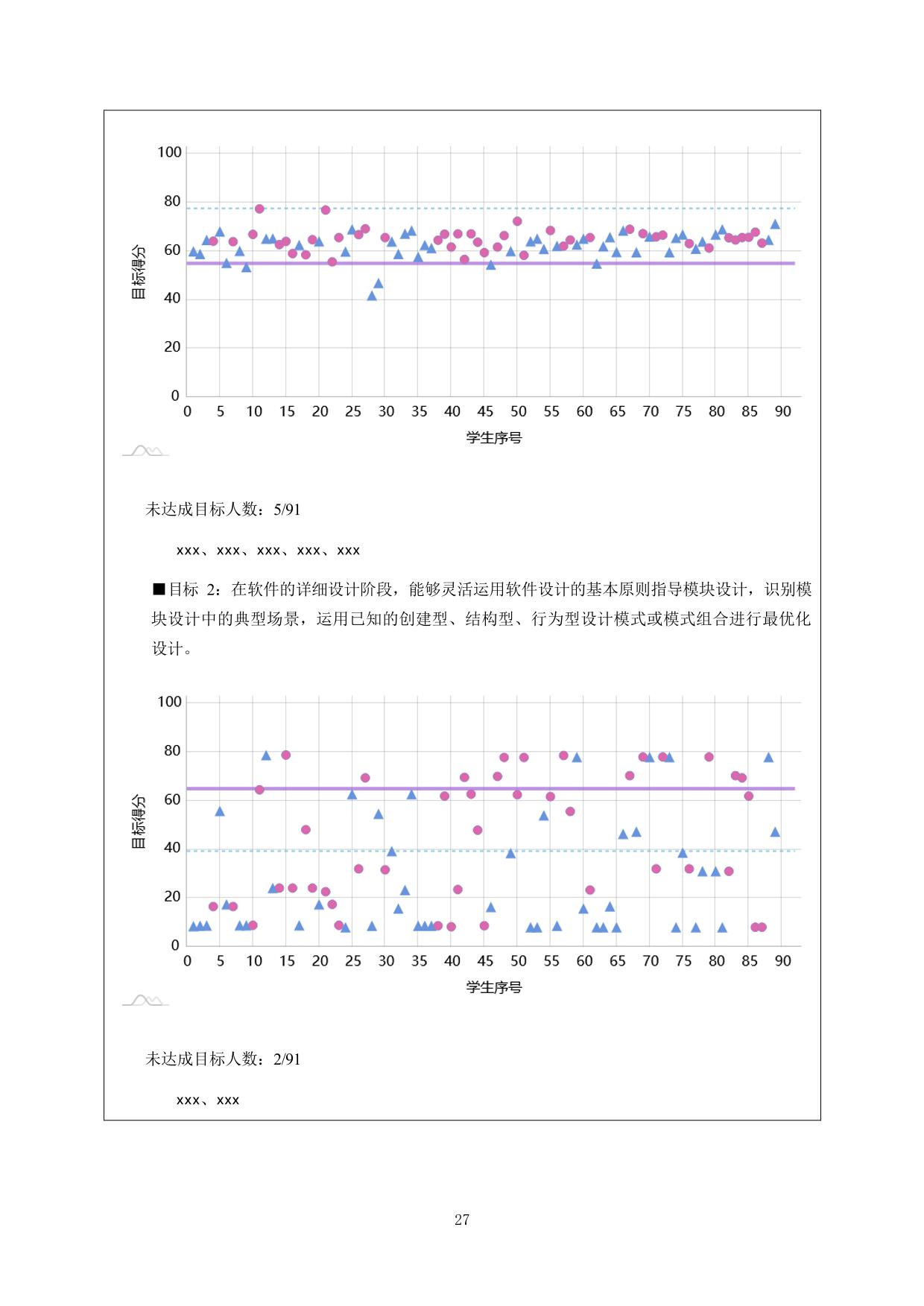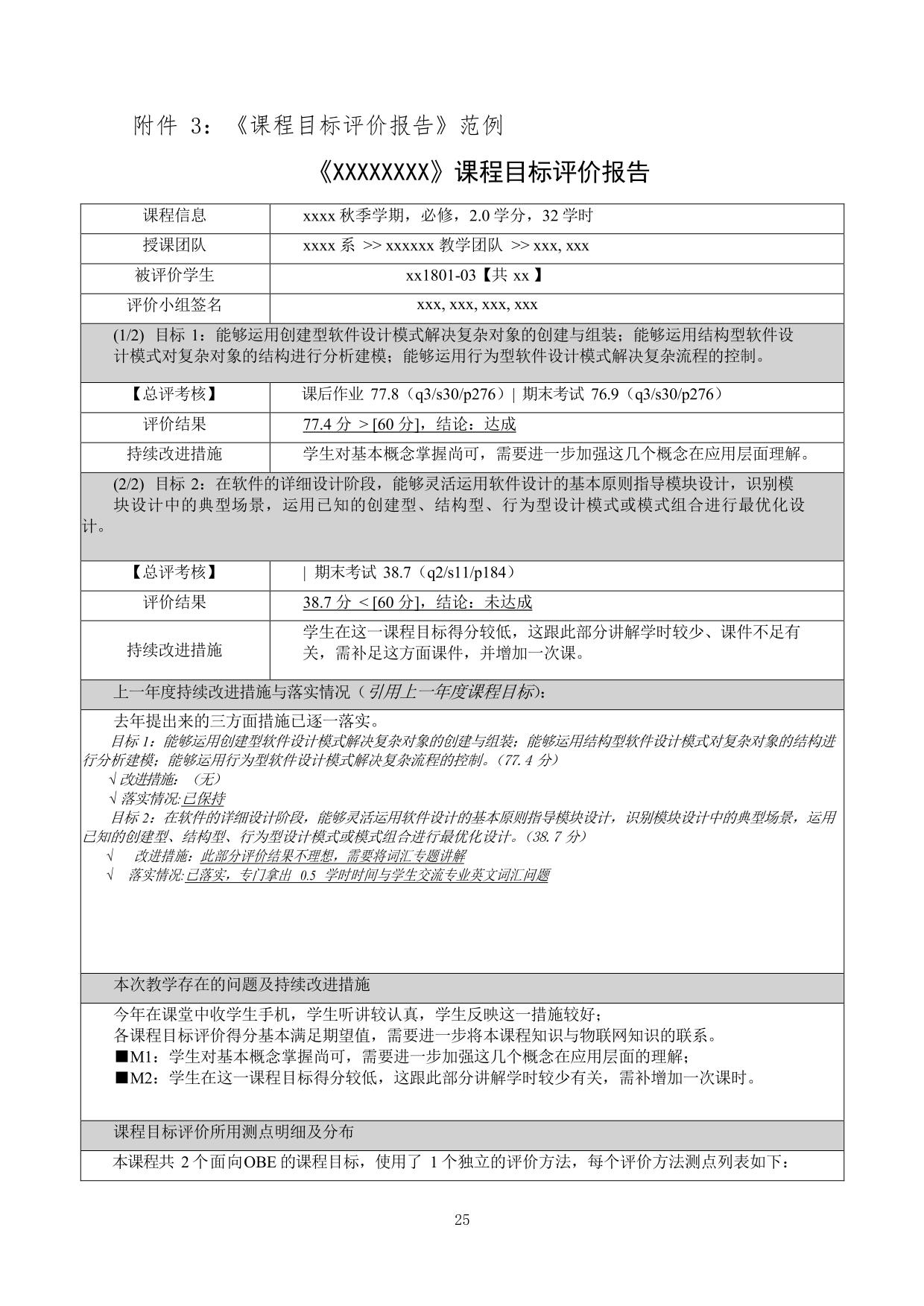 專業(yè)不設(shè)統(tǒng)一的課程目標達成標準,由課程負責人根據(jù)課程目標性質(zhì)、試題難度、改進措施落實情況等因素,綜合確定本年度本課程下各課程目標的達成標準(即期望值)。