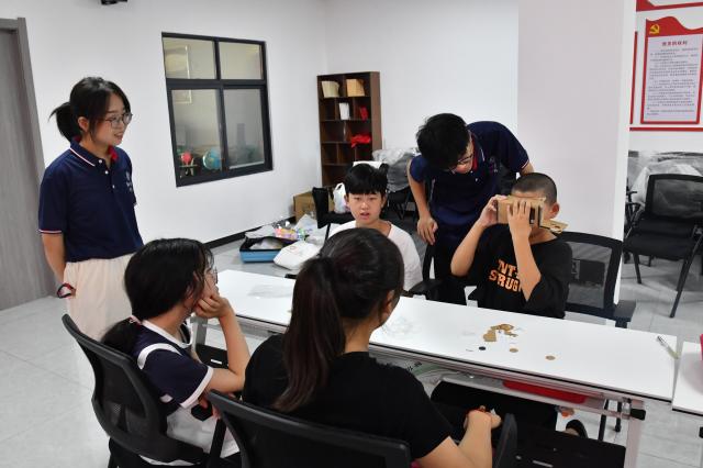 上午,志愿者劉浩結(jié)合PPT和特效視頻,運(yùn)用通俗易懂的語(yǔ)言和豐富有趣的事例向小朋友們介紹了虛擬現(xiàn)實(shí)技術(shù)(VR)的原理、分類(lèi)及特點(diǎn),帶領(lǐng)小朋友們踏入充滿科技感和未來(lái)感的VR科技世界,更直觀地感受先進(jìn)科技的魅力。在互動(dòng)環(huán)節(jié)中,小朋友們?cè)谥驹刚邔?zhuān)業(yè)且耐心的引導(dǎo)下,親自動(dòng)手實(shí)踐,一步步細(xì)致地組裝起簡(jiǎn)易VR眼鏡,一段段3D特效的動(dòng)畫(huà)視頻在VR眼鏡中生動(dòng)展現(xiàn),瞬間將小朋友們帶入了一個(gè)全新的維度,讓他們領(lǐng)略到了前所未有的視覺(jué)盛宴與沉浸體驗(yàn)。此環(huán)節(jié)不僅讓小朋友們深刻感受到VR技術(shù)的獨(dú)特魅力,了解了其中的科學(xué)原理以及其在現(xiàn)實(shí)中的應(yīng)用,更在他們心中播下了探索未來(lái)科技的種子,激發(fā)了小朋友們對(duì)科學(xué)技術(shù)的好奇心和基礎(chǔ)理解,在實(shí)踐中培養(yǎng)創(chuàng)新精神和協(xié)作精神。