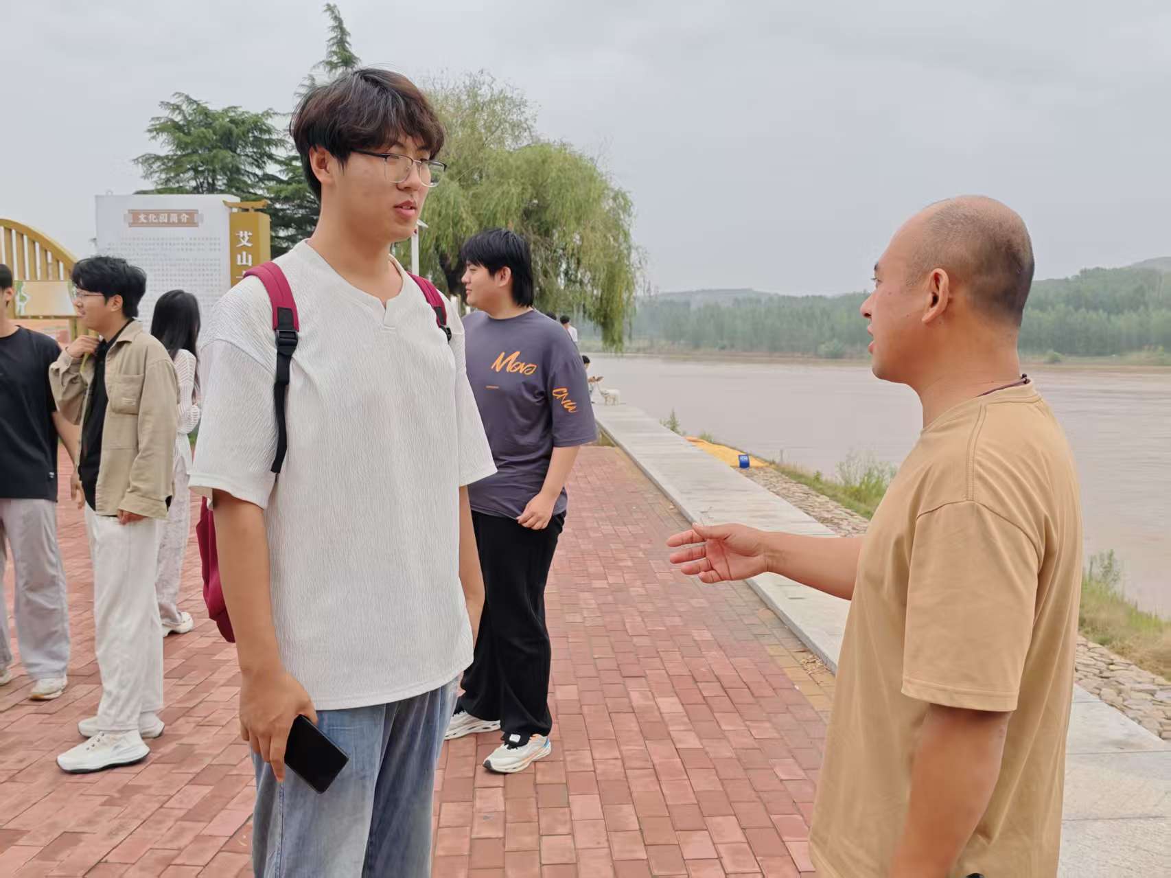 活動(dòng)最后,志愿者們考察了艾山黃河險(xiǎn)工遺址,邀請水利專家現(xiàn)場講解堤壩結(jié)構(gòu)、防汛原理及“埽工”傳統(tǒng)技藝,體悟古今治河智慧。通過這一環(huán)節(jié),隊(duì)員們對黃河的防洪工程有了更直觀的認(rèn)識(shí),也對古今治河智慧有了更深的理解。