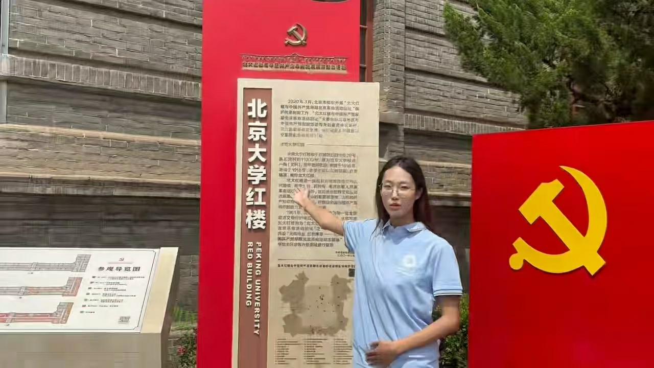 活動伊始,北京大學紅樓斑駁的磚墻與泛黃的史料訴說著新文化運動與五四運動的激蕩歲月。實踐團成員們沿著歷史脈絡,先后參觀了李大釗、毛澤東工作過的閱覽室等重要舊址,仔細聆聽語音講解講述百年前先進學子探索救國救民道路的艱辛歷程,在復原場景中追溯馬克思主義在中國早期傳播的足跡,感悟青年知識分子“以青春之我,創(chuàng)建青春之國家”的赤誠忠心。隨后,在莊嚴肅穆的天安門廣場,實踐團成員仰望國旗飄揚,重溫新中國成立的輝煌時刻,深刻體會“天安門城樓見證的不僅是歷史榮光,更是一代代中國人的奮斗坐標”。大家來到人民英雄紀念碑前,整齊列隊,向為民族獨立與人民解放犧牲的先烈三鞠躬。碑座上的浮雕生動再現(xiàn)了虎門銷煙、金田起義、五四運動等歷史場景,每一處細節(jié)都在訴說著“沒有先烈的浴血奮戰(zhàn),就沒有今日的山河無恙”。實踐團成員們凝視碑文鐫刻的革命歷程,通過誦讀英烈事跡,將對先烈的緬懷轉(zhuǎn)化為強國有我的責任擔當。