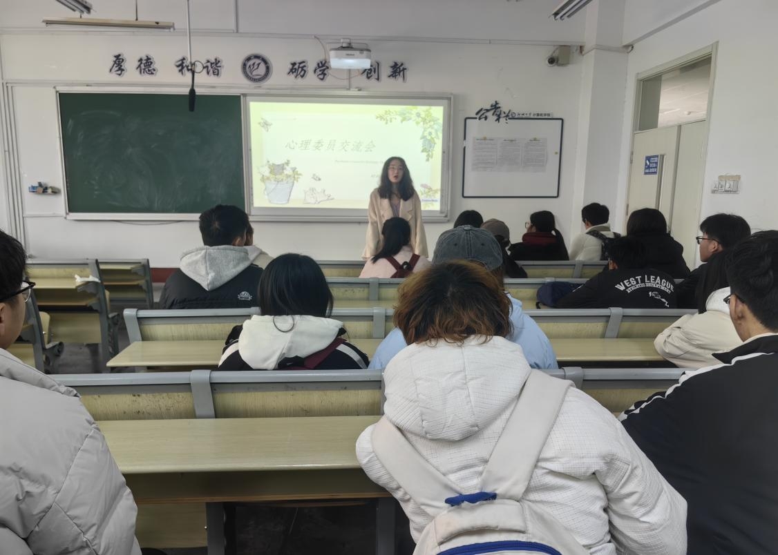 為進(jìn)一步加強(qiáng)我院心理工作的貫徹落實,動員心理委員積極履行職責(zé),激發(fā)學(xué)生參加心理活動的積極性與主動性,計算機(jī)學(xué)院心理部于2月20日在西校區(qū)10號樓C120教室舉辦“心光閃耀,攜手前行”心理委員交流會,由計算機(jī)學(xué)院心理輔導(dǎo)員李佳雯主持,各班心理委員參加會議。