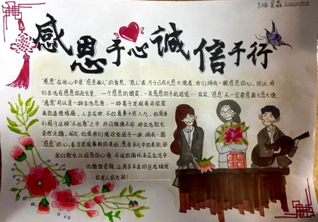 為進(jìn)一步加深同學(xué)們對誠信感恩的理解,構(gòu)建和諧互信、充滿誠信感恩的美麗校園。計(jì)算機(jī)學(xué)院勤工助學(xué)部于5月16日-5月18以線上方式舉辦“感恩于心,誠信于行”主題手抄報(bào)比賽。