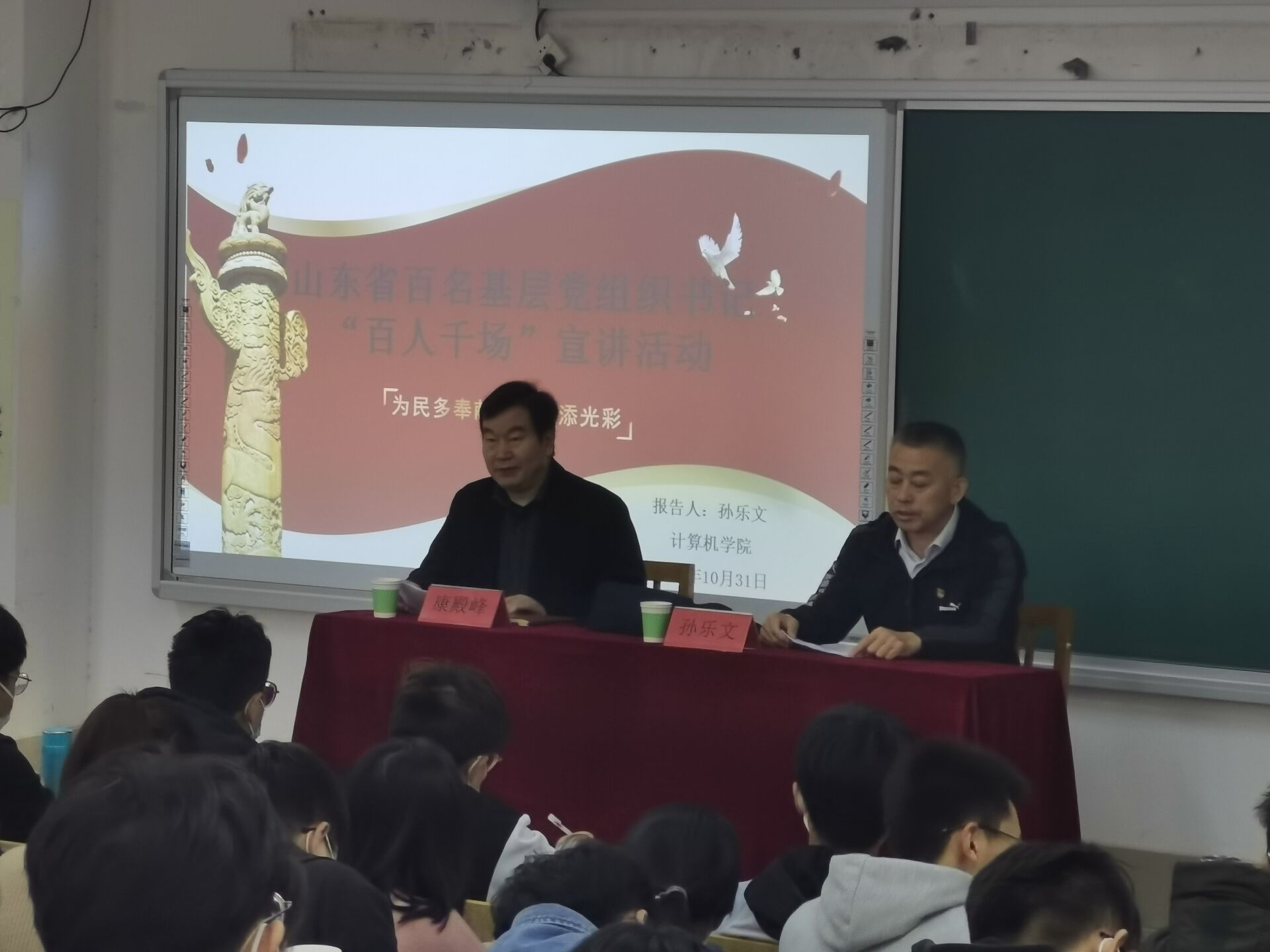 為推動(dòng)黨史教育走深走實(shí),讓入黨積極分子在自己的實(shí)際學(xué)習(xí)生活中腳踏實(shí)地,不負(fù)青春、不負(fù)韶華,將自己的行為融入到實(shí)現(xiàn)中華民族偉大復(fù)興的事業(yè)中,10月31日,山東省基層黨組織書記“百人千場(chǎng)”宣講活動(dòng)走進(jìn)計(jì)算機(jī)學(xué)院,東昌府區(qū)道口鋪街道仙莊村黨支部書記孫樂文作專題宣講,本次報(bào)告會(huì)由黨總支書記康殿峰主持,學(xué)生黨支部第29期全體入黨積極分子參加。