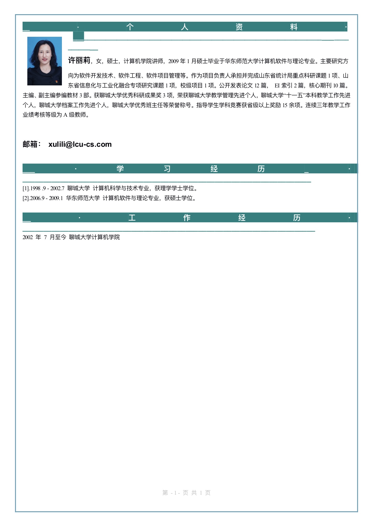 您目前的位置: 首頁» 學院概況» 師資隊伍» 許麗莉
