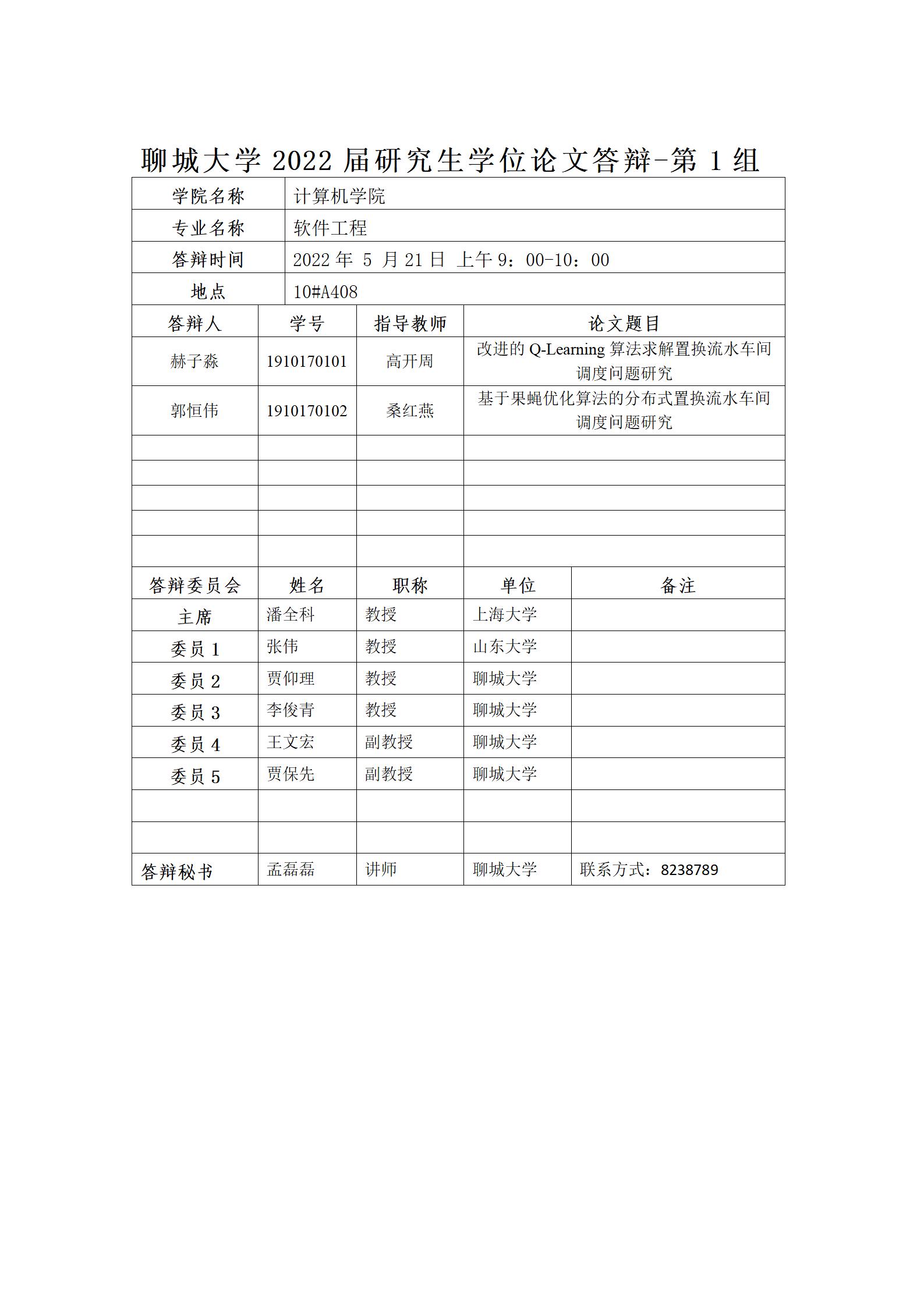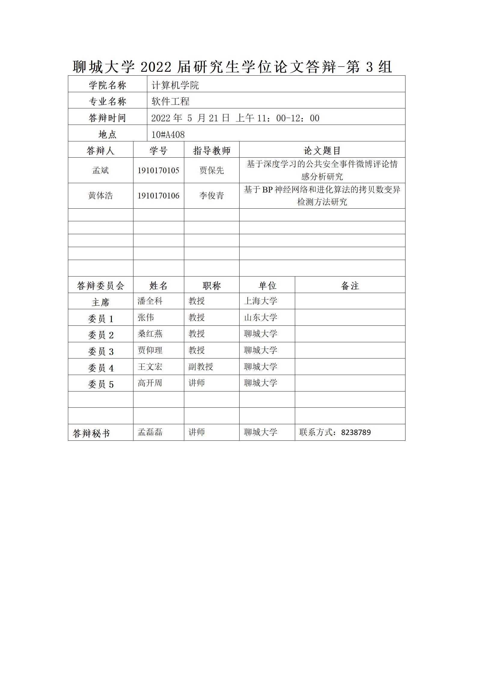 聊城大學(xué)計(jì)算機(jī)學(xué)院2022屆研究生學(xué)位論文答辯