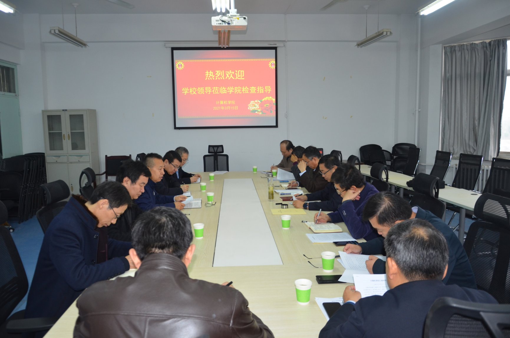 3月15日上午,學校黨委書記關(guān)延平、校長王昭風蒞臨計算機學院進行工作調(diào)研,副校長胡海泉、趙長林和學校辦公室、教務(wù)處等相關(guān)職能部門負責人陪同調(diào)研,學院領(lǐng)導(dǎo)班子成員參加調(diào)研座談。
