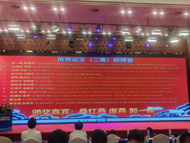 近日,我院高開周老師課題組最新研究成果《An Improved Artificial Bee Colony Algorithm with Q-learning for Solving Permutation Flow-shop Scheduling Problems》獲得第六屆智能優(yōu)化與調(diào)度學(xué)術(shù)會(huì)議優(yōu)秀論文二等獎(jiǎng)。該論文第一作者為我院2020級(jí)碩士研究生李晗瀟,指導(dǎo)老師為高開周博士。我院桑紅燕教授作為頒獎(jiǎng)嘉賓之一,為獲獎(jiǎng)?wù)哳C獎(jiǎng)。