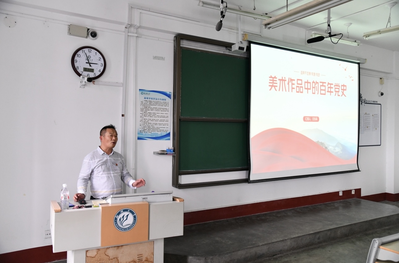 王東兵以時(shí)間線為軸,講述新民主主義革命時(shí)期、社會(huì)主義革命和建設(shè)時(shí)期、改革開放和社會(huì)主義現(xiàn)代化建設(shè)時(shí)期、中國特色社會(huì)主義新時(shí)期四個(gè)不同時(shí)期涌現(xiàn)出來的經(jīng)典美術(shù)作品,展現(xiàn)出中國美術(shù)的百年發(fā)展與中國共產(chǎn)黨輝煌的奮斗歷程相疊印,與黨的事業(yè)發(fā)展壯大同頻共振。他從畫面上的人物神態(tài)和動(dòng)作、色彩、光線投射等角度向同學(xué)們講解這些美術(shù)作品呈現(xiàn)出來的細(xì)節(jié)和畫面效果,讓他們通過美術(shù)作品了解到作品背后的歷史故事,加深了對黨的認(rèn)識,堅(jiān)定對黨的信仰。同時(shí),王東兵還熱情地與同學(xué)們進(jìn)行互動(dòng),不僅充分調(diào)動(dòng)了他們的學(xué)習(xí)興趣,也讓同學(xué)們感受到畫作藝術(shù)表現(xiàn)的魅力。培訓(xùn)結(jié)束后,同學(xué)們紛紛表示通過老師對這些美術(shù)作品的講解,對黨的發(fā)展歷程有了全面的認(rèn)識,對美術(shù)作品也有更深刻的理解,他們將充分發(fā)揮先鋒模范作用,為實(shí)現(xiàn)中華民族偉大復(fù)興的中國夢貢獻(xiàn)青春力量。