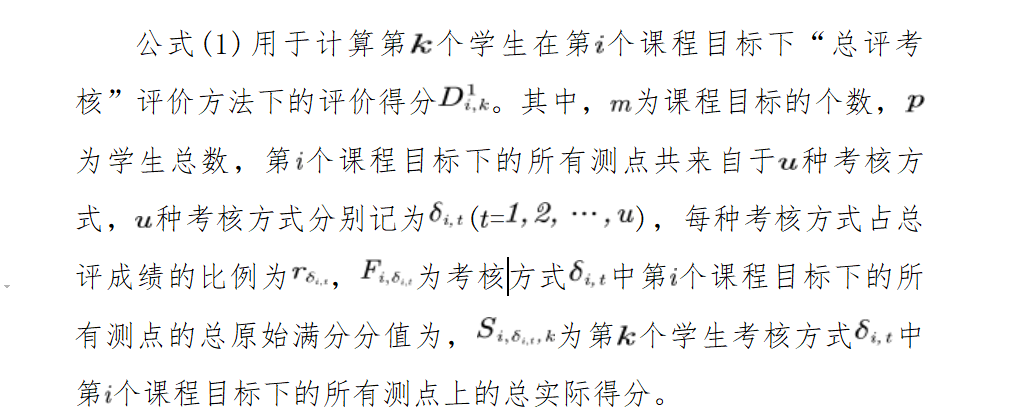 課程目標評價結(jié)果計算公式如下:
