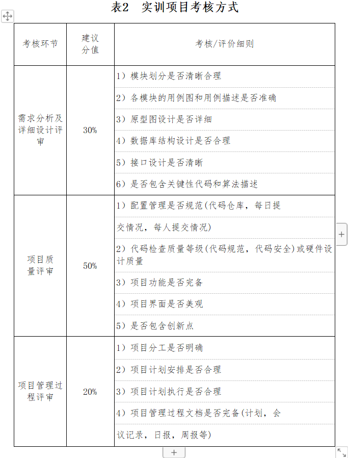 實(shí)訓(xùn)課的評(píng)價(jià)涵蓋項(xiàng)目實(shí)訓(xùn)的整個(gè)過(guò)程,對(duì)該過(guò)程的重點(diǎn)環(huán)節(jié)進(jìn)行監(jiān)督和質(zhì)量評(píng)價(jià),以確保整個(gè)實(shí)訓(xùn)過(guò)程學(xué)生能力的提高。