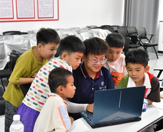 為進(jìn)一步激發(fā)小朋友們對(duì)科學(xué)技術(shù)的興趣,提高他們對(duì)編程知識(shí)的理解和實(shí)踐能力,志愿者結(jié)合專(zhuān)業(yè)優(yōu)勢(shì),制作簡(jiǎn)易編程課程,提供少兒編程體驗(yàn)。專(zhuān)業(yè)志愿者的指導(dǎo)下,小朋友們打開(kāi)少兒編程軟件界面,通過(guò)拖拽圖形化編程塊,像搭積木一樣構(gòu)建自己的圖形界面。從簡(jiǎn)單的“數(shù)學(xué)運(yùn)算闖關(guān)小游戲”到復(fù)雜的“小貓酷跑”,每一個(gè)項(xiàng)目都充滿了挑戰(zhàn)與創(chuàng)意。小朋友們?cè)谝淮未螌W(xué)習(xí)實(shí)踐中增長(zhǎng)知識(shí),在一次次調(diào)整試錯(cuò)中積累經(jīng)驗(yàn),在調(diào)試成功、運(yùn)行順利后露出歡笑,小朋友們不僅學(xué)會(huì)了基本的編程邏輯和語(yǔ)法,還充分發(fā)揮想象力,將傳統(tǒng)文化元素融入其中,創(chuàng)造出一個(gè)個(gè)既有趣又富有教育意義的作品。相信此次少兒編程啟蒙課程和實(shí)踐體驗(yàn),能為小朋友們帶來(lái)拓寬視野和提升動(dòng)手能力的新機(jī)遇。