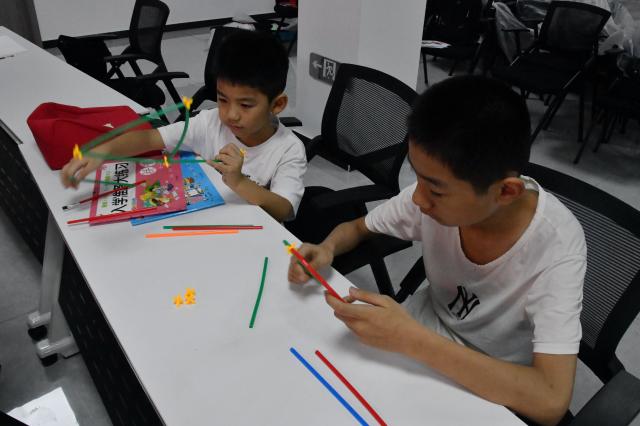 為進(jìn)一步提高小朋友們的動(dòng)手實(shí)踐能力和創(chuàng)新思維水平,志愿者組織開(kāi)展“小吸管大世界”小游戲,將活動(dòng)氛圍推向了高潮。在這個(gè)充滿樂(lè)趣與挑戰(zhàn)的環(huán)節(jié)中,小朋友們開(kāi)動(dòng)腦筋、表演創(chuàng)意,利用志愿者分發(fā)的小吸管、紐扣等簡(jiǎn)易材料,巧妙地構(gòu)建出形態(tài)各異的結(jié)構(gòu)與物體。有的小朋友匠心獨(dú)運(yùn),搭建起簡(jiǎn)易書(shū)架,展現(xiàn)出驚人的空間想象能力;有的小朋友鐘情于自然之美,創(chuàng)造出橋梁、樹(shù)木等的簡(jiǎn)易景觀;有的小朋友結(jié)合愛(ài)好、發(fā)揮想象,拼接出安全帽、椅子的簡(jiǎn)易框架。這些小游戲淋漓盡致地展現(xiàn)了小朋友們的想象力和創(chuàng)造力,更在動(dòng)手實(shí)踐的過(guò)程中,悄然提升了小朋友們的手眼協(xié)調(diào)能力和團(tuán)隊(duì)協(xié)作精神,讓他們認(rèn)識(shí)到了吸管的再利用性和多功能性,增強(qiáng)了環(huán)保意識(shí)。