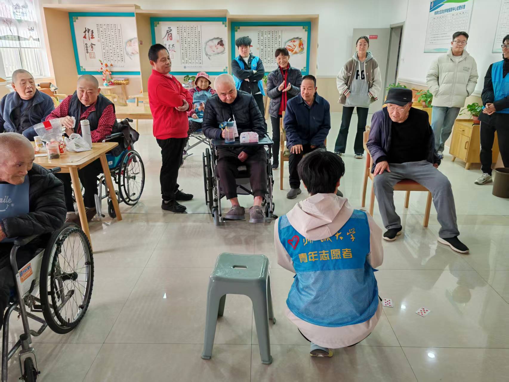 本次志愿服務(wù)圍繞生活、健康、精神三個(gè)維度,為老人打造全面的關(guān)愛體系。志愿者化身為貼心助手,幫老人整理房間、晾曬衣物,陪伴他們推輪椅散步,讓日常起居更加便利,生活照料方面更加舒適。志愿者們通過測量血壓、提醒服藥,帶領(lǐng)老人做保健操,為他們的健康保駕護(hù)航,給老人們足夠的健康關(guān)懷。同時(shí),志愿者陪老人聊天,聆聽他們講述過去的故事,讀報(bào)講故事,組織合唱、手工等趣味文體活動(dòng),帶來精心的精神陪伴。此外,志愿者們緊跟時(shí)代步伐,教老人使用智能手機(jī),實(shí)現(xiàn)視頻通話,拍攝紀(jì)念照,幫助老人融入數(shù)字時(shí)代。老人們紛紛表示,志愿者的到來讓養(yǎng)老院充滿了活力與溫暖,他們感受到了久違的關(guān)懷與陪伴。