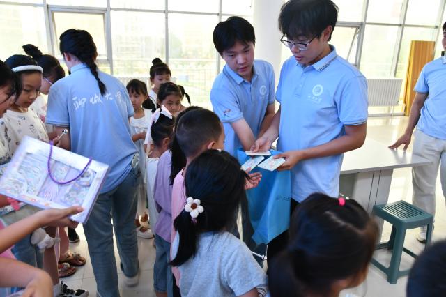 志愿者組織孩子們分享在七彩假期中的所有收獲:破冰環(huán)節(jié)中設(shè)計(jì)繪滿(mǎn)家鄉(xiāng)元素的DIY姓名牌、親手制作的“情緒魔法瓶”以及利用Scratch編程軟件創(chuàng)作出的“會(huì)跳舞的小動(dòng)物”作品,這些生動(dòng)具體的成果,不僅僅是手工和代碼的結(jié)晶,更是孩子們?cè)谏缃蝗谌搿⑶榫w管理、邏輯思維、問(wèn)題解決和創(chuàng)新實(shí)踐能力上悄然綻放的成長(zhǎng)之花,清晰地記錄了他們?cè)谶@個(gè)七彩假期中自信、友愛(ài)與能力的全面提升。志愿者們?yōu)楹⒆觽冾C發(fā)了精心準(zhǔn)備的獎(jiǎng)品,以表彰他們?cè)诨顒?dòng)中的出色表現(xiàn),鼓勵(lì)他們繼續(xù)在編程和藝術(shù)的道路上勇敢探索,追求卓越。在頒發(fā)完獎(jiǎng)品后,內(nèi)蒙古自治區(qū)烏海市白樓社區(qū)黨委書(shū)記徐廷清為聊城大學(xué)計(jì)算機(jī)學(xué)院社會(huì)實(shí)踐基地隆重揭牌,這標(biāo)志著雙方在推動(dòng)社區(qū)教育與科技融合合作上邁出了重要的一步,進(jìn)一步加深了校地合作的深度與廣度。徐廷清在本次活動(dòng)的閉幕儀式上致辭,對(duì)參與此次社會(huì)實(shí)踐活動(dòng)的聊大青年學(xué)子表達(dá)了高度的贊賞和殷切的期望。他鼓勵(lì)大家要持續(xù)關(guān)注社區(qū)發(fā)展,積極參與社區(qū)建設(shè),將所學(xué)的知識(shí)和專(zhuān)業(yè)技能與社區(qū)實(shí)際需求相結(jié)合,勇于探索,敢于創(chuàng)新,為社區(qū)的進(jìn)步與發(fā)展貢獻(xiàn)青春的智慧和力量。