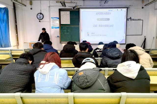 會(huì)議伊始,于慶生從頭盔的保護(hù)原理和作用為切入點(diǎn),強(qiáng)調(diào)了校園騎行戴安全頭盔的重要性,并用一個(gè)個(gè)觸目驚心的校園騎行事故案例,引起學(xué)生對(duì)校園安全騎行的重視,增強(qiáng)同學(xué)們的安全防范意識(shí)。隨后,于慶生對(duì)冬季防溺水安全知識(shí)做了詳盡的講解,使同學(xué)們進(jìn)一步了解冬季冰面的風(fēng)險(xiǎn)和溺水事故發(fā)生的原因,預(yù)防溺水的措施及落入冰窟的自救方法。他指出,全體學(xué)生應(yīng)該做到“六個(gè)不”:不私自下水,不擅自與同學(xué)結(jié)伴入水,不在未做好充分熱身的情況下游泳,不到無(wú)安全設(shè)施、無(wú)救援人員和不熟悉的水域游泳。同時(shí),于慶生通過講述真實(shí)的案例,使學(xué)生充分認(rèn)識(shí)到滑冰溺水的危害,切實(shí)提高學(xué)生的安全意識(shí)和安全自護(hù)自救能力。
