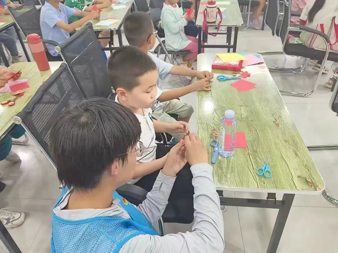 剪紙成形意盈盈,傳承非遺永流芳。實(shí)踐活動(dòng)前期,團(tuán)隊(duì)成員認(rèn)真?zhèn)湔n和研討,精心構(gòu)思活動(dòng)內(nèi)容,購(gòu)置剪紙用品。進(jìn)入活動(dòng)室之后,成員們介紹了剪紙的歷史由來,起源和用途,幫助小朋友們了解手工剪紙的藝術(shù)特點(diǎn)和寓意。團(tuán)隊(duì)成員一邊為小朋友介紹,一邊進(jìn)行操作演示,細(xì)心地為小朋友講解剪紙的技巧,他們還鼓勵(lì)小朋友們根據(jù)自己的想象力和創(chuàng)造力,多進(jìn)行自主創(chuàng)作,讓剪刀在紙上自由地“舞蹈”。大家熱情高漲,紛紛在紅色的剪紙上描畫、折疊、剪開。在剪紙教學(xué)中,小朋友們不僅學(xué)習(xí)到剪紙的基本知識(shí)和技巧,他們的動(dòng)手動(dòng)腦能力也獲得了一定程度的鍛煉。此外,我們還可以借此機(jī)會(huì)向小朋友們普及防溺水知識(shí),提高他們的自我保護(hù)意識(shí)。讓孩子們?cè)诳鞓芳艏埖耐瑫r(shí),更深層次地感受到中華文化的魅力和重要性,增強(qiáng)對(duì)中華文化的認(rèn)知和理解。