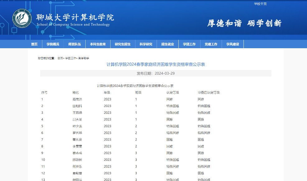 根據(jù)學(xué)校對困難學(xué)生定期進行資格審查的要求,2024年3月對我院2020、2021、2022、2023級困難學(xué)生中開展資格審查、調(diào)整工作,并予以公示。