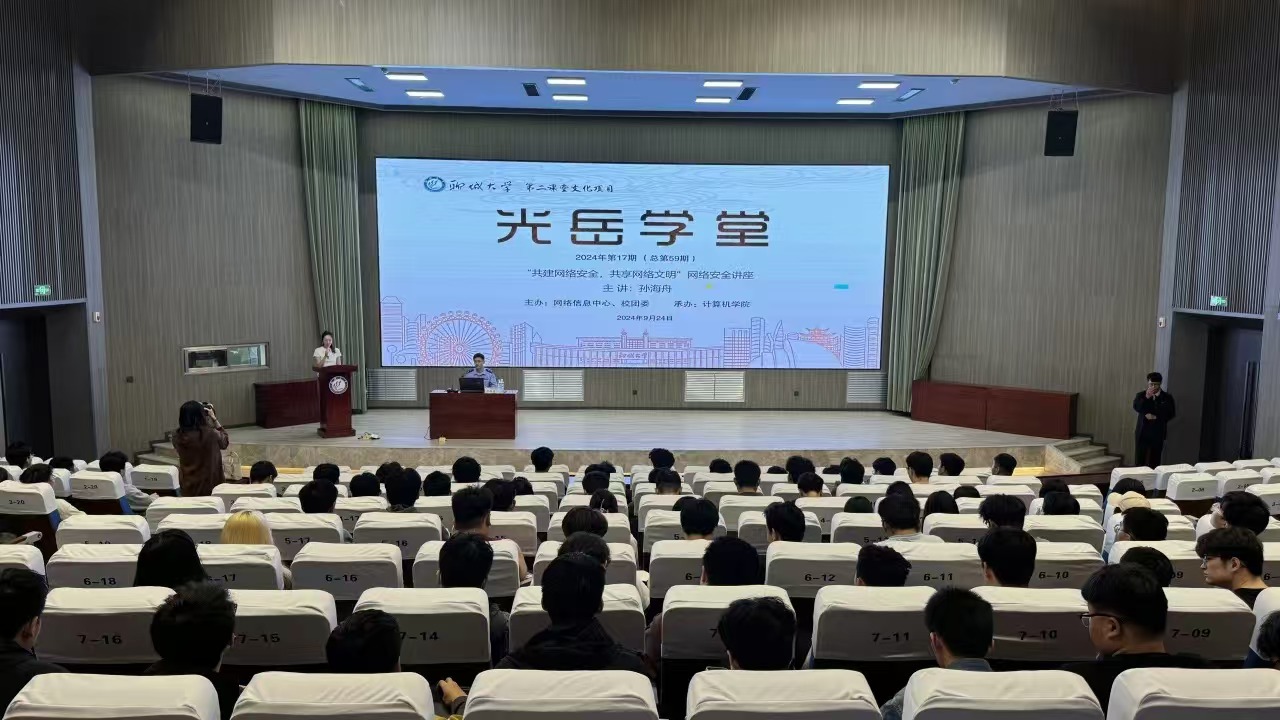 為進(jìn)一步推動(dòng)金融安全教育工作,增強(qiáng)學(xué)生的網(wǎng)絡(luò)安全警惕性,9月24日,由網(wǎng)絡(luò)信息中心、校團(tuán)委主辦,計(jì)算機(jī)學(xué)院團(tuán)委承辦的第59期光岳學(xué)堂——“共建網(wǎng)絡(luò)安全,共享網(wǎng)絡(luò)文明”專題講座于東校區(qū)實(shí)訓(xùn)樓一樓報(bào)告廳舉辦。本期講座特邀聊城市公安局網(wǎng)絡(luò)安全保衛(wèi)支隊(duì)四級(jí)警長(zhǎng)孫海舟擔(dān)任主講人,計(jì)算機(jī)學(xué)院輔導(dǎo)員李佳雯主持,各學(xué)院學(xué)生代表參加活動(dòng)。孫海舟指出,要樹立正確的金融安全觀念,預(yù)見風(fēng)險(xiǎn),防患未然,并叮囑同學(xué)們?cè)谌粘I钪幸獣r(shí)刻保持警惕,做到規(guī)范、安全、文明上網(wǎng)。本次講座的順利舉辦,不僅增強(qiáng)了學(xué)生們的金融安全意識(shí)和防范能力,也為學(xué)校加強(qiáng)網(wǎng)絡(luò)安全宣傳教育工作提供了支持,為創(chuàng)建安全、健康的網(wǎng)絡(luò)環(huán)境奠定了堅(jiān)實(shí)的基礎(chǔ)。