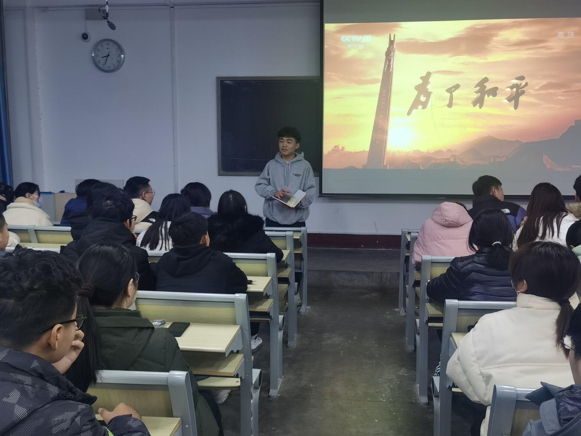 為深入貫徹習(xí)近平新時代中國特色社會主義思想,引導(dǎo)當(dāng)代青年學(xué)習(xí)不忘初心、牢記使命、永遠(yuǎn)奮斗的偉大精神,厚植愛國主義情懷,鼓勵其為實現(xiàn)中華民族偉大復(fù)興的中國夢作出新的更大貢獻(xiàn),12月11日,計算機學(xué)院組織學(xué)生黨支部于10#121集體觀看紀(jì)錄片《為了和平》。