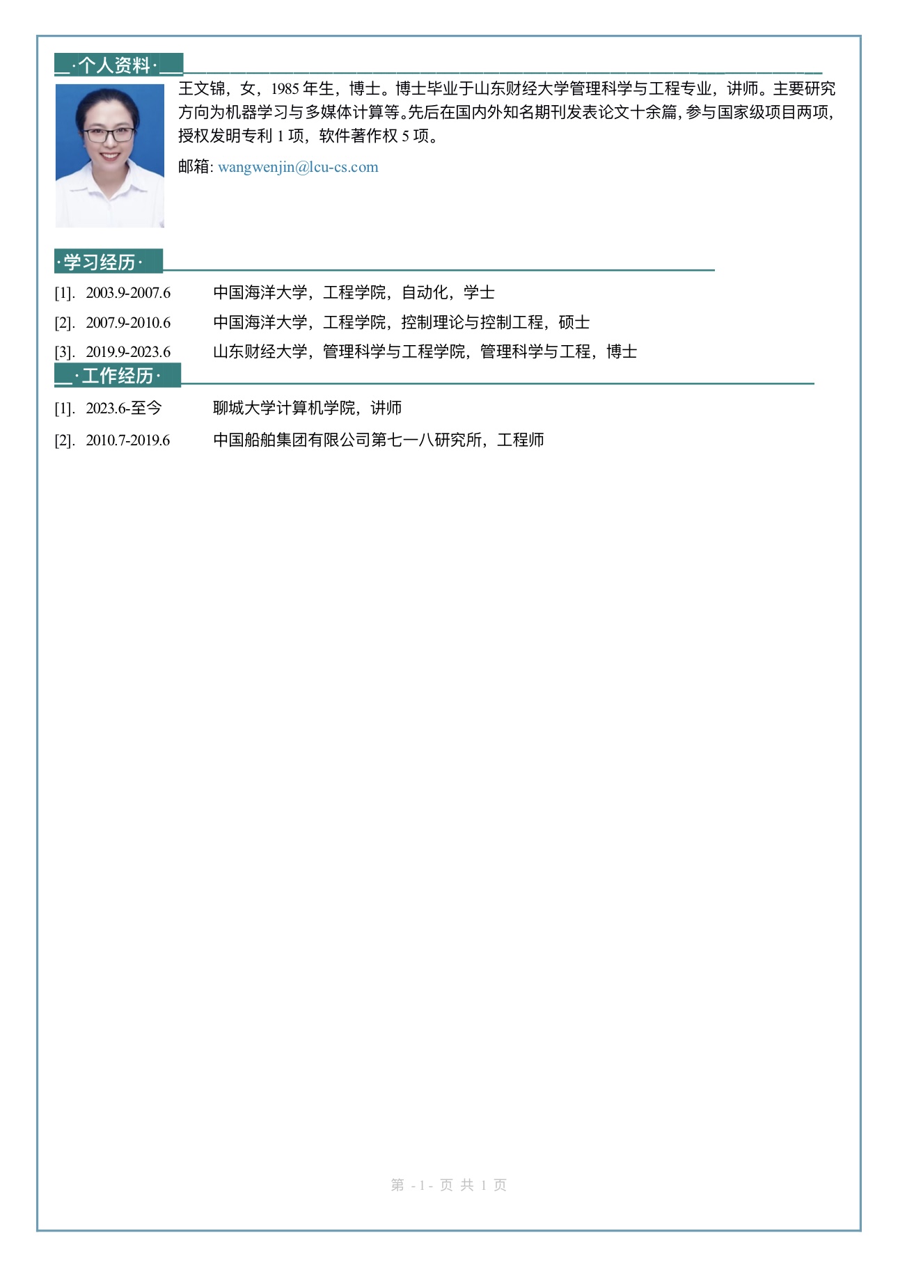 您目前的位置: 首頁» 學(xué)院概況» 師資隊(duì)伍» 王文錦