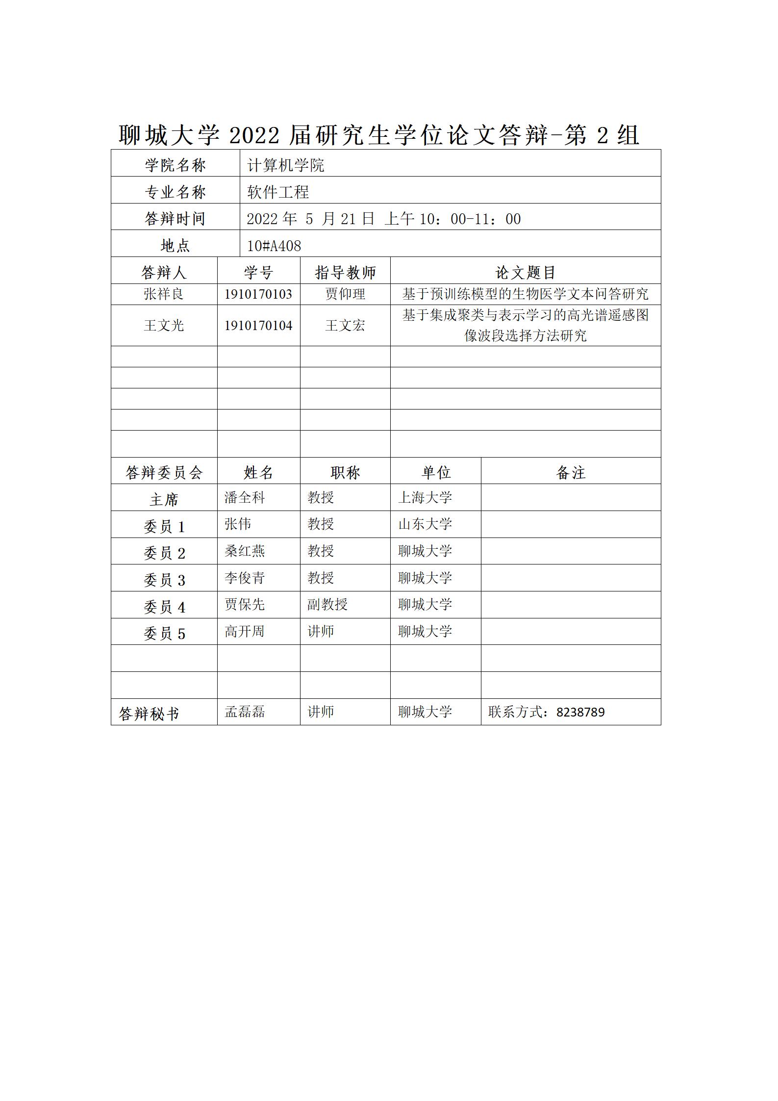 聊城大學(xué)計(jì)算機(jī)學(xué)院2022屆研究生學(xué)位論文答辯