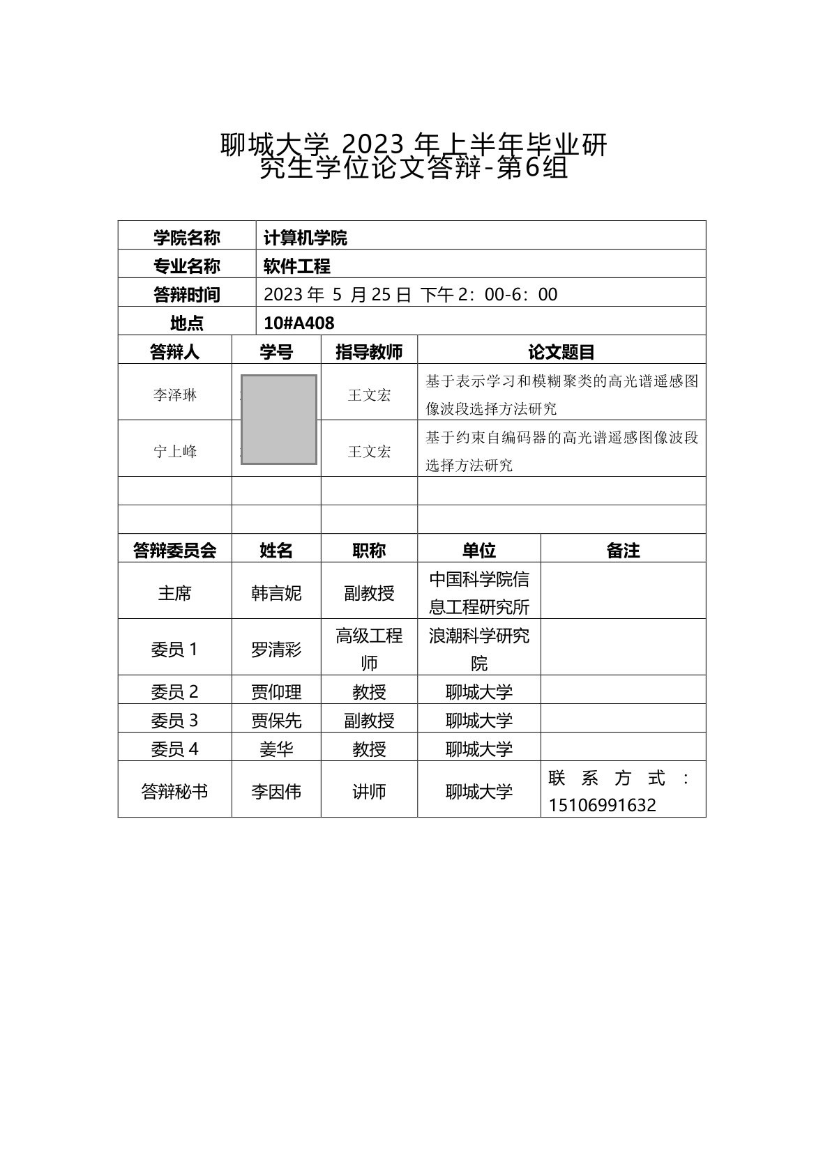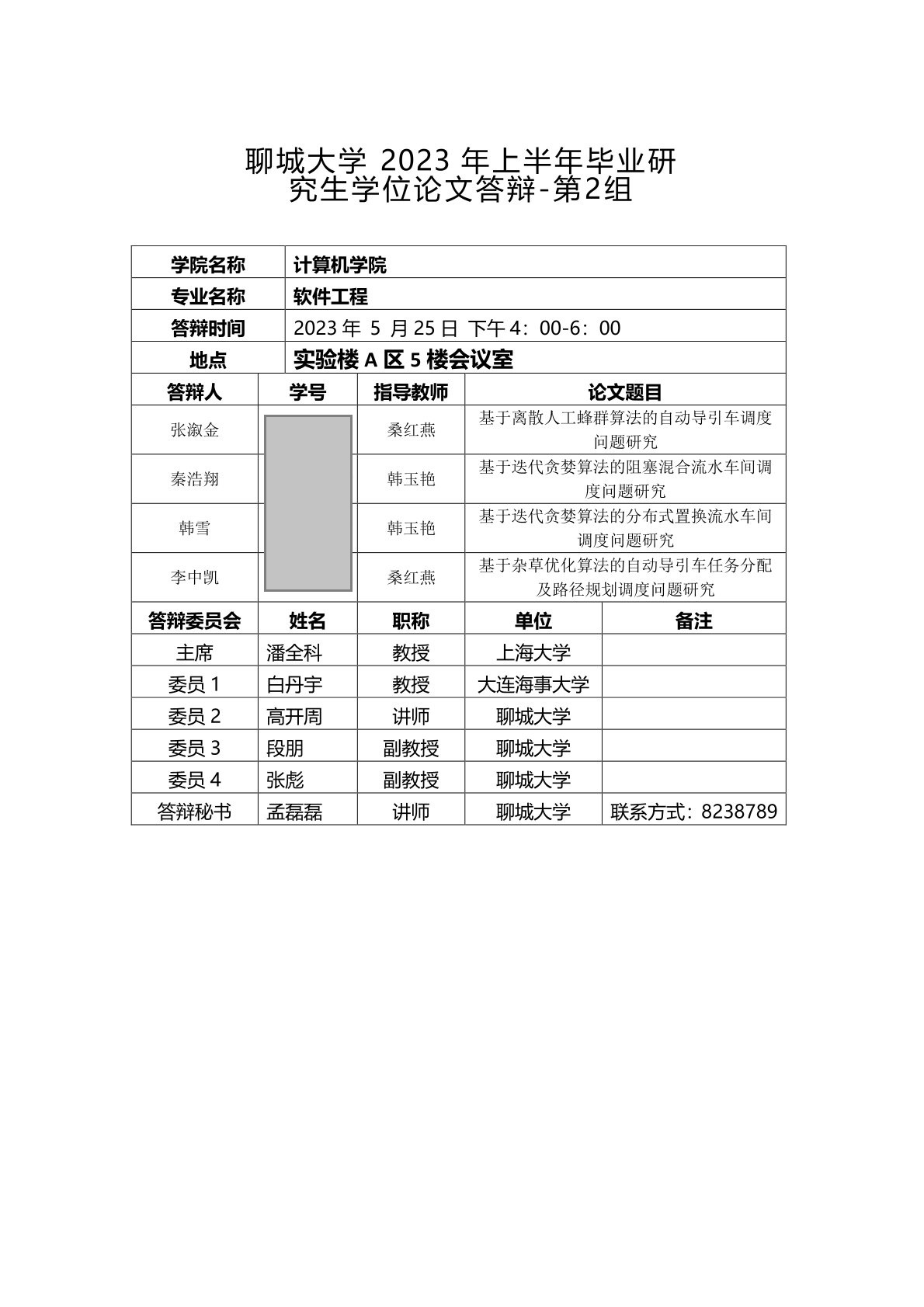 聊城大學(xué)計算機學(xué)院2023年上半年畢業(yè)研究生學(xué)位論文答辯