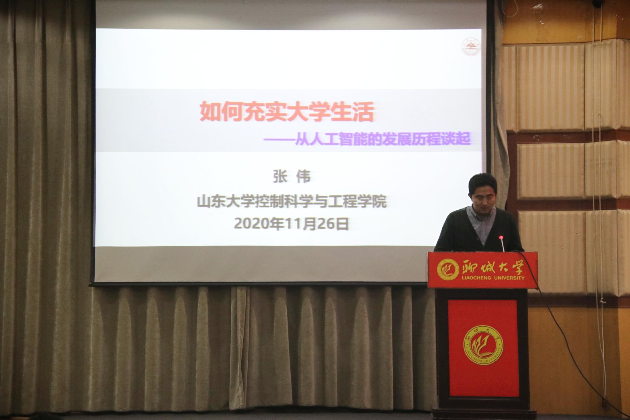 為進(jìn)一步幫助同學(xué)們了解專業(yè)前景,激發(fā)學(xué)習(xí)熱情,為自己合理規(guī)劃大學(xué)生涯,11月26日,由學(xué)生工作處主辦、計(jì)算機(jī)學(xué)院承辦的“羨林大講堂—如何充實(shí)大學(xué)生活 從人工智能的發(fā)展歷程談起”專家講座于西校區(qū)圖書館大報(bào)告廳舉辦。本次講座特邀山東大學(xué)教授、博士生導(dǎo)師張偉主講,計(jì)算機(jī)學(xué)院黨總支書記康殿峰,副院長(zhǎng)、黨總支副書記劉永濤,及計(jì)算機(jī)學(xué)院各專業(yè)同學(xué)參加了講座。